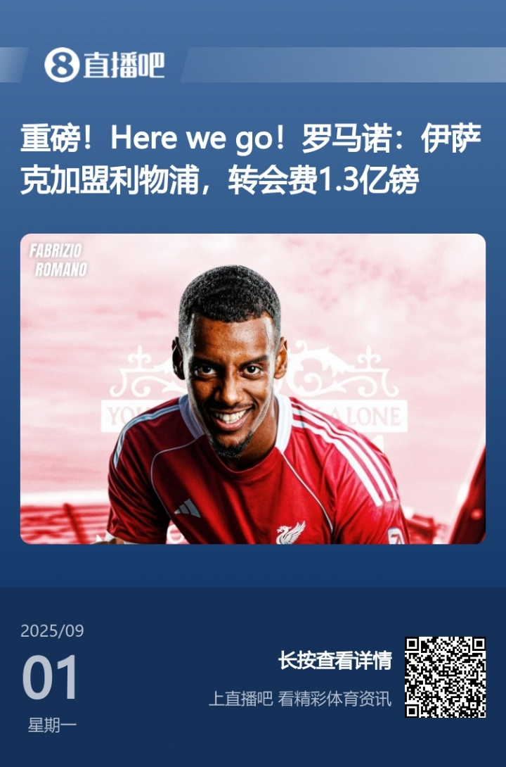 重磅!Here we go!罗马诺:伊萨克加盟利物浦,英超新闻网NBA直播转会费1.3亿镑