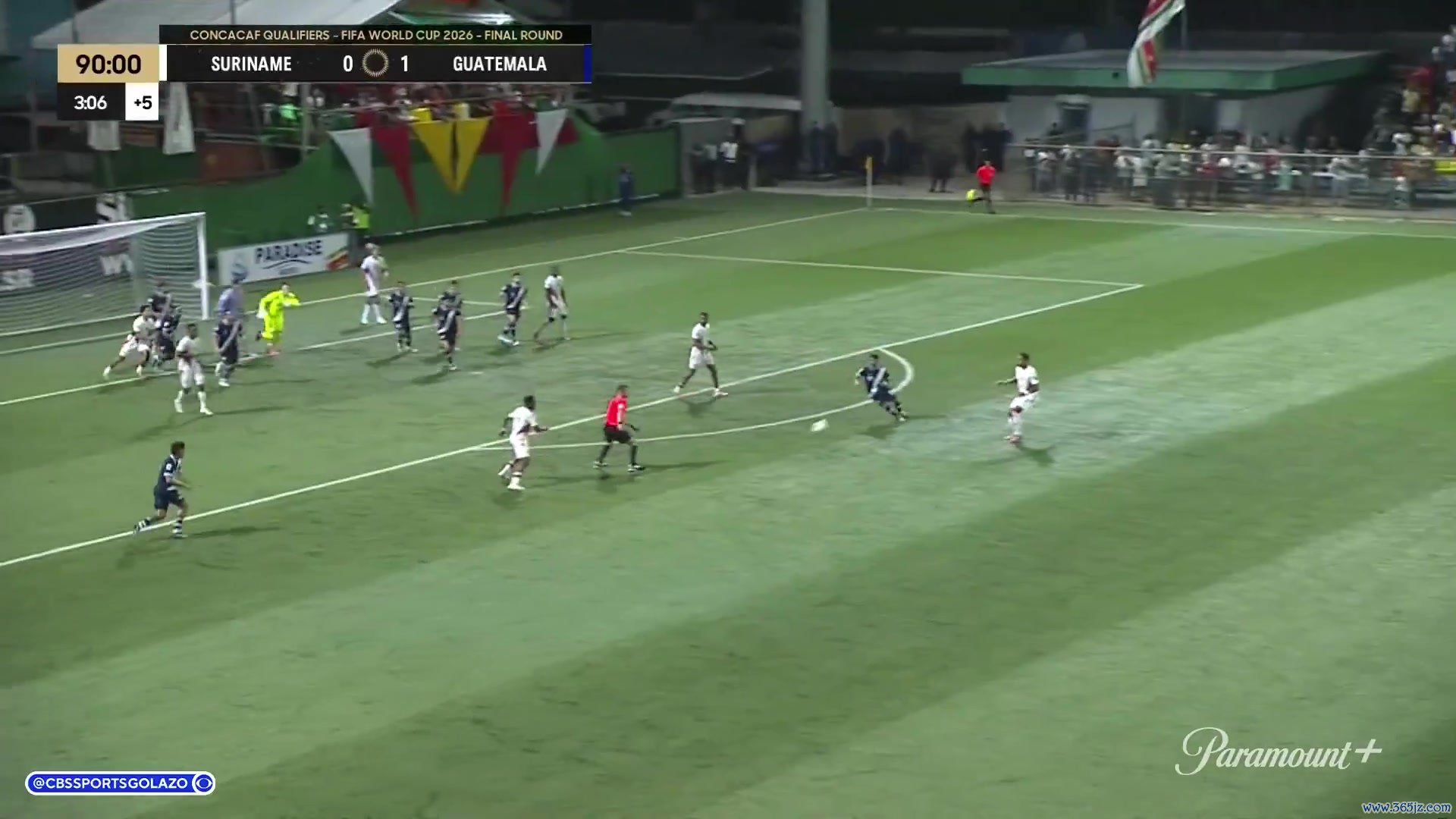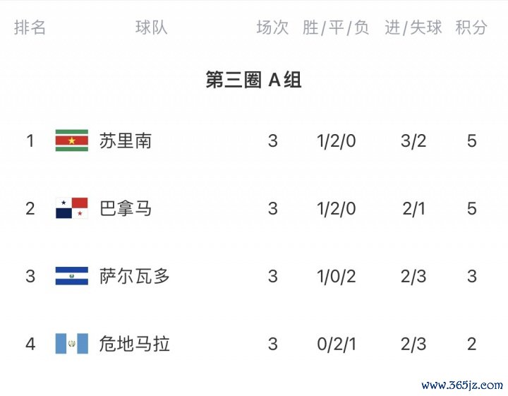 10月11日讯 世界杯赛 中北美洲及加勒比海区预选赛第三轮,苏里南第94分钟1-1绝平危地马拉,升至小组第一。