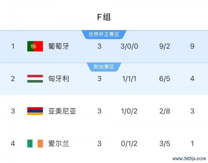 10月12日讯 世预赛欧洲区F组两场赛事 战罢,葡萄牙1-0爱尔兰,匈牙利2-0亚美尼亚。