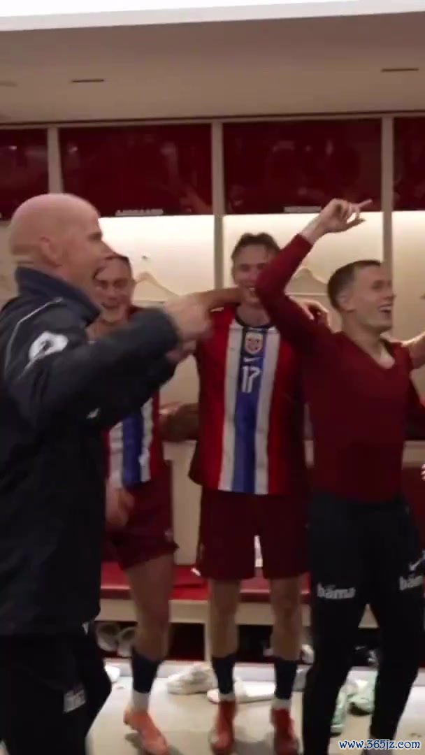 10月12日讯 本轮世预赛挪威5-0狂胜以色列,最快下轮可锁定世界杯赛 正式比赛门票, 德甲英超直播赛后挪威全队在更衣室纵情庆祝,英超新闻网负伤 的领队 厄德高只能坐在座位上和队友一起嗨。