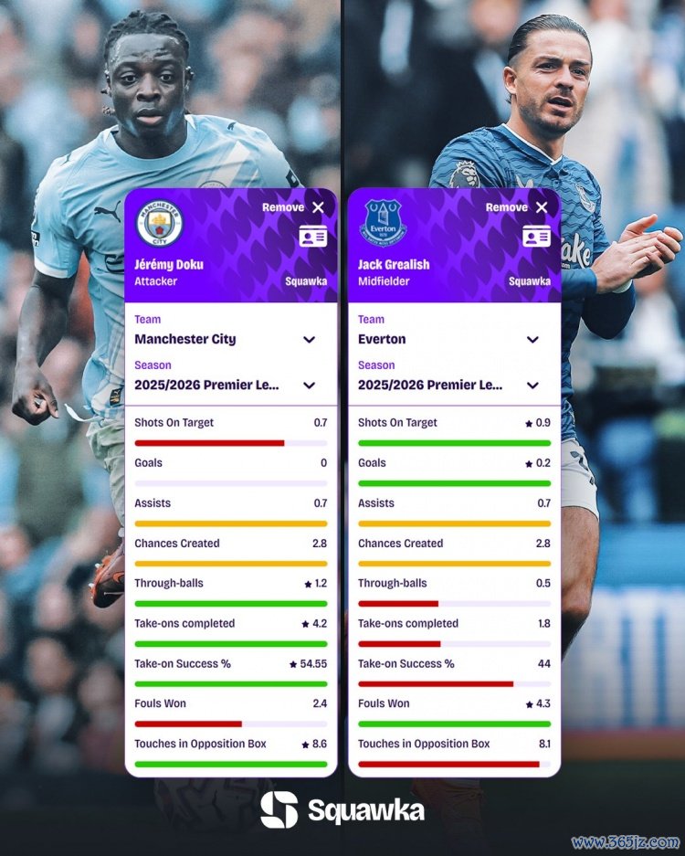 10月17日讯 北京时间明天晚上,曼城将在英超第8轮赛事 中主场作战 对阵埃弗顿, 国际米兰英超直播Squawka统计了多库、格拉利什本赛季英超每90分钟的数据, 德甲并作出对比。