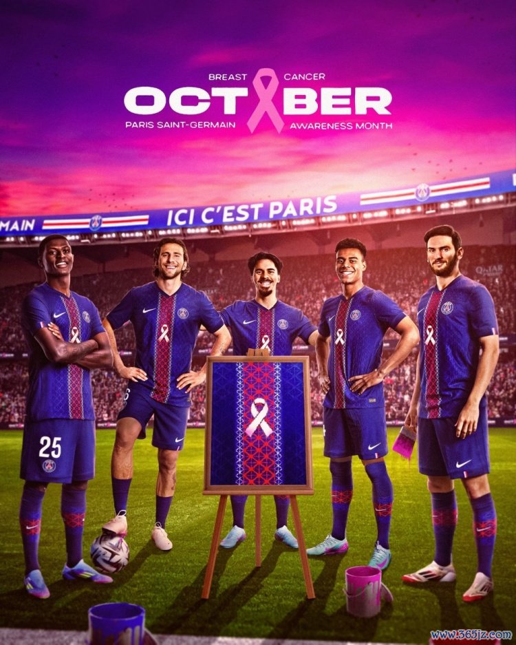 巴黎发布海报和公告,英超新闻网确认球员们将身穿特制运动活动 服 , 国际米兰直播吧参加主场作战 对阵斯特拉斯堡的赛事 , 德甲运动活动 服 胸前带有粉色丝带图案,这是全球抗击乳腺癌的象征。