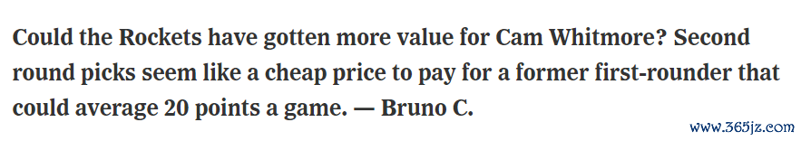 北京时间7月25日nba在线高清免费观看,火箭队记Kelly Iko与球迷互动时,谈到了惠特莫尔交易的话题。一个球迷表示:“火箭本可以用惠特莫尔换来更多筹码吗?对于一个有可能场均得到20分的前首轮秀来说,只换来次轮签似乎太廉价了。”Iko的回应和解读如下——