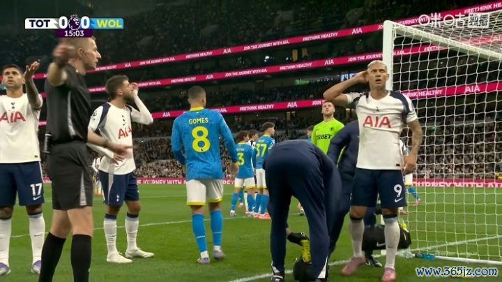 09月28日讯 英超第6轮热刺vs狼队第14分钟。库杜斯顶球被扑至横梁,理查利森与其同时抢点时撞到头部,英超新闻网直播吧起身后看起来有点懵。