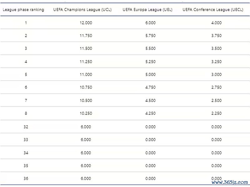 这是因为本赛季的欧洲积分规则发生变化,扩大了欧冠的积分权重,而且主要体现在奖励分数中。特别是联赛阶段,修改为按照排名先后来计算,欧冠的奖励幅度,比以前的规则要高出很多。
