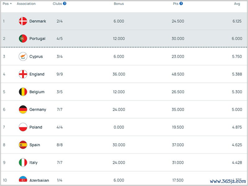 不过,由于现在没有确定最终的排名,只能按第36名来计算,欧冠是6分,欧联杯和欧协联都是0分。所以,现在所有球队的奖励积分,全部都是欧冠带来的,每支球队各有6分。