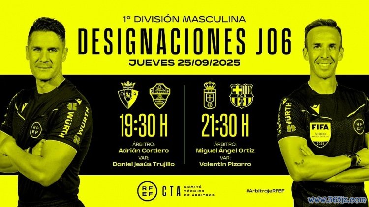 9月24日讯 北京时间9月26日,2025-26赛季西甲联赛第6轮将进行两场比赛的较量,西班牙足协官方今日公布了两场比赛的裁判安排,英超新闻网直播吧奥蒂兹执法巴萨客战皇家奥维耶多。