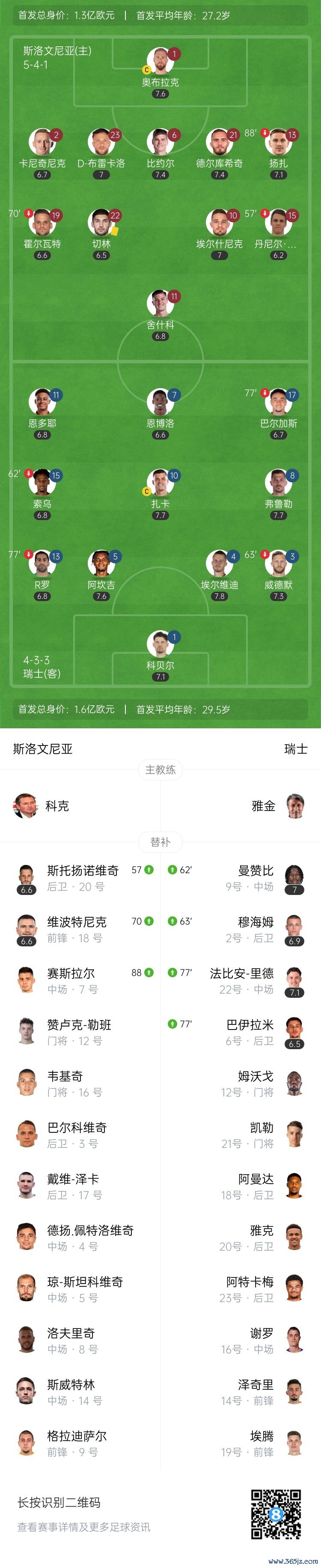 10月14日讯 世预赛欧洲区小组赛B组第4轮,斯洛文尼亚0-0战平瑞士。