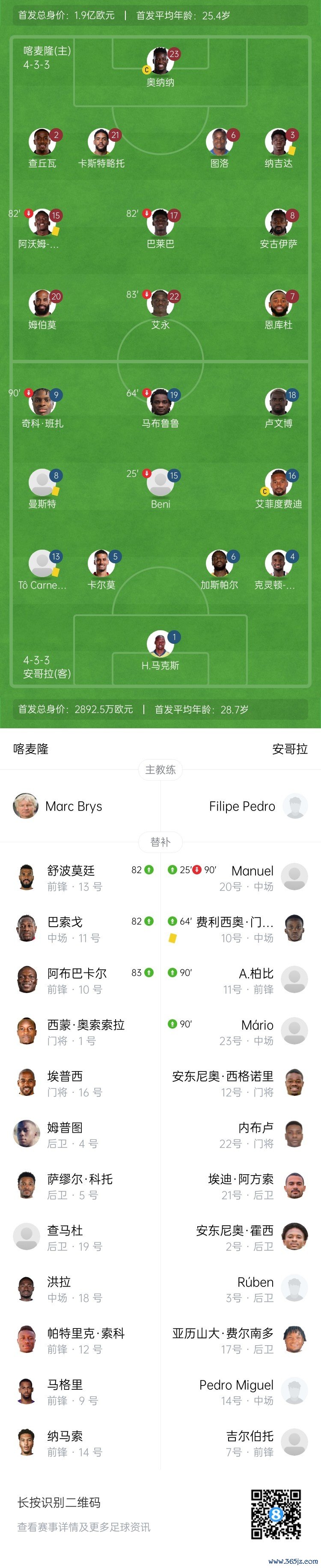 此役, 国际米兰喀麦隆派出的首发阵容身价高达1.9亿欧英超联赛比分排名, 德甲姆贝莫、奥纳纳、安古伊萨、巴莱巴等球星悉数首发。而对手安哥拉首发身价不到2900万欧。