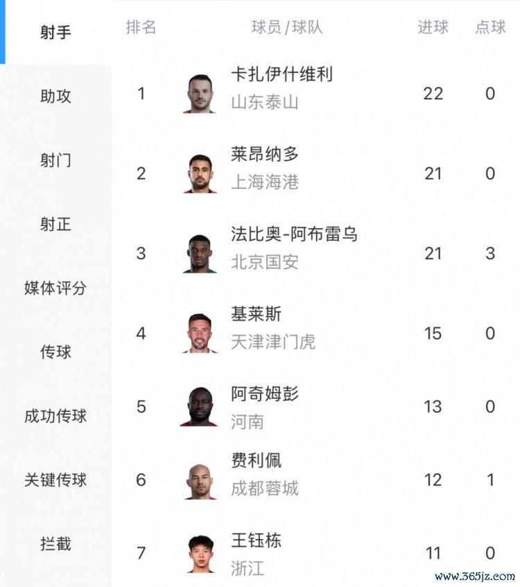 10月20日讯 中超联赛27轮战罢,金靴之争进入白热化阶段,英超新闻网直播吧卡扎伊什维利22球领跑, 国际米兰莱昂纳多、法比奥落后1球。