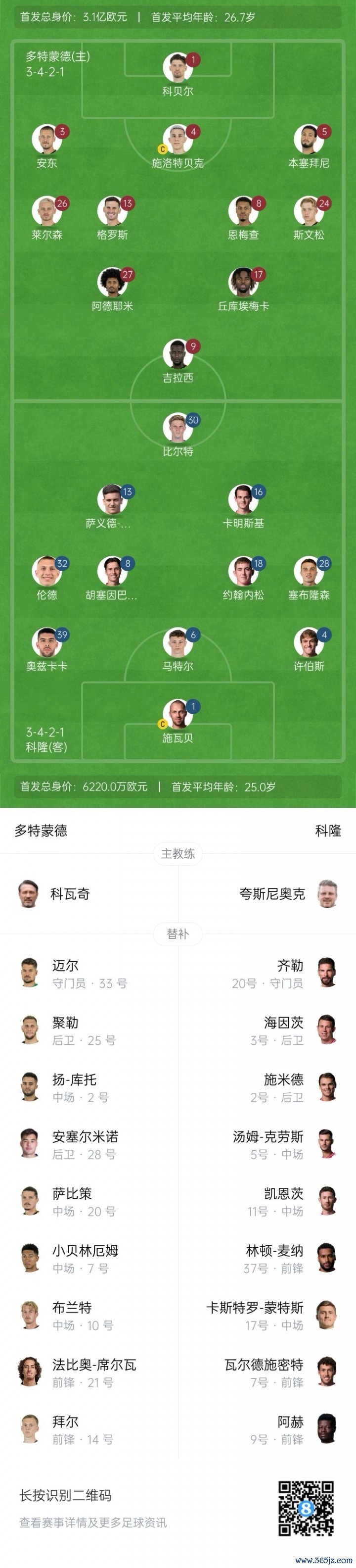 多特首发:1-科贝尔、26-莱尔森、3-安东、4-施洛特贝克、5-本塞拜尼、24-斯文松、13-格罗斯、8-恩梅查、27-阿德耶米、17-丘库埃梅卡、9-吉拉西