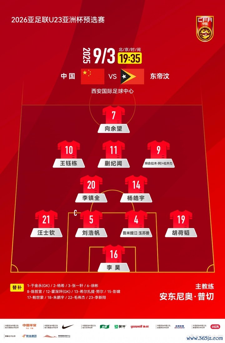 09月03日讯 U22国足官方公布赛事 阵形 :4231,向余望单箭头,英超新闻网直播吧王钰栋、拜合拉木分居两翼, 国际米兰蒯纪闻担任前腰。