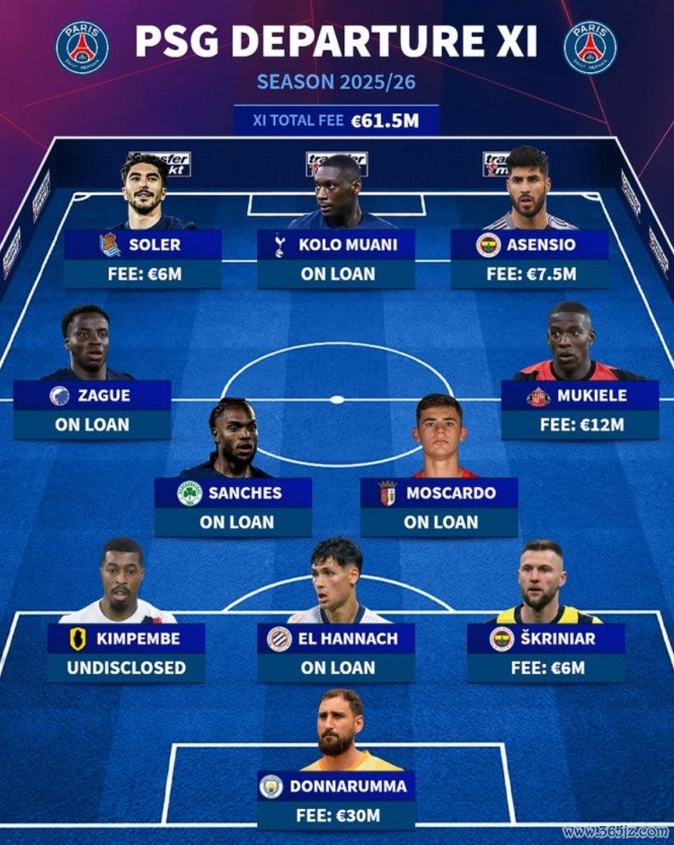 直播吧9月10日讯新科欧冠第一名 巴黎在今夏完成大清洗,《转会市场》也列出了一套巴黎今夏离队阵形 ,多纳鲁马领衔。