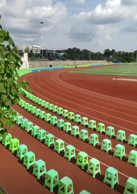 从该博主晒出的视频可以看到,内江主场作战 赛道场地 内整齐摆放了塑料矮凳,这样也能让观赛人群 更近距离观看赛事 。
