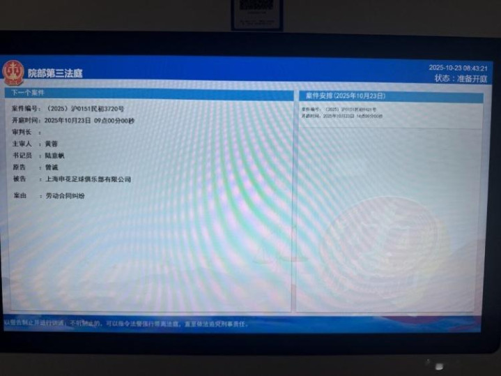 张冰在社媒晒出了本次开庭的相关信息,原告为曾诚,被告为上海申花古代足球 俱乐部,英超新闻网案由为劳动合同纠纷。